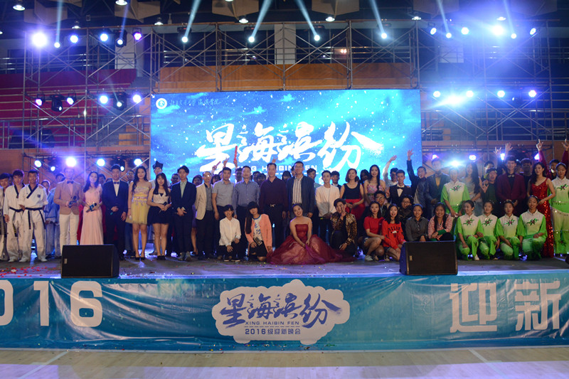 10月19日晚,为迎接2016级新生的到来,展现我校学子风采,以“星海滨纷”为主题的2016级迎新晚会在我校海滨体育馆举行。祥兴集团副总裁陈建辉、祥兴集团黄骅项目总经理张如珠,我院副院长薛爱兴、党委副书记魏炜以及部分职能处室负责人和无授课任务教师代表出席了晚会同现场1800多名学生观看了精彩演出。