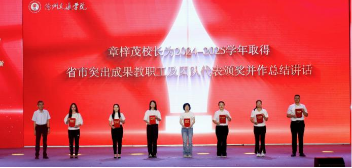 校长章梓茂为2024-2025学年取得省市突出成果教职工及团队代表颁奖。