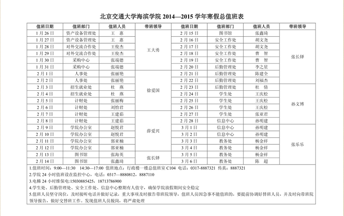 上一条:北京交通大学海滨学院行政值班表(1月)